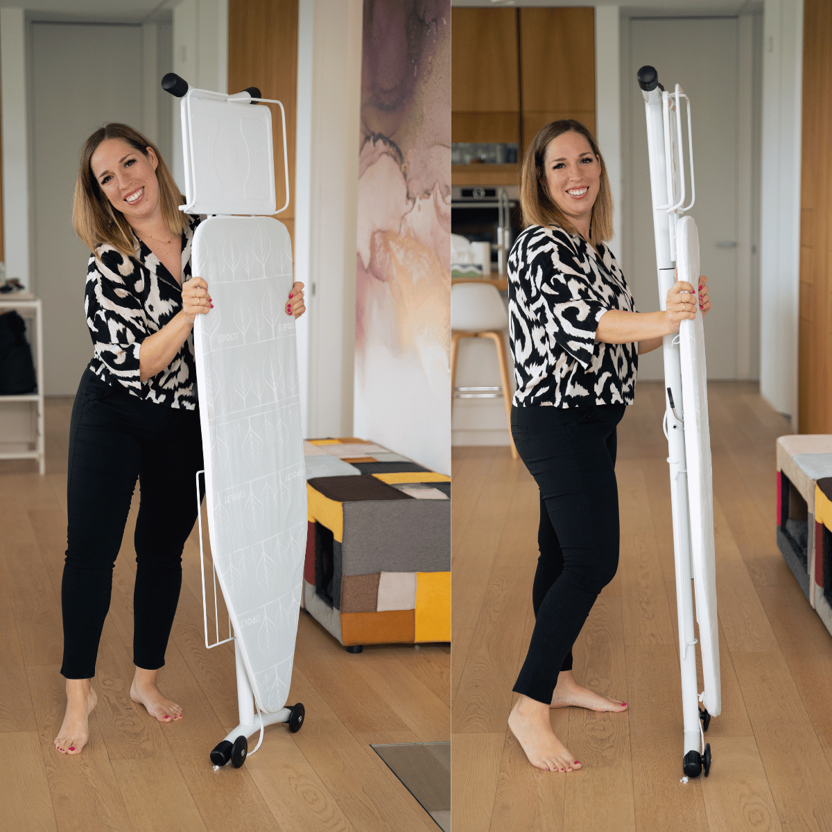 Ko končate z likanjem, se Vaporella zloži v izjemno kompaktno obliko, primerna za shranjevanje tudi v manjših prostorih. Varnostni sistem za zaklepanje pa zagotavlja, da ostane deska zaprta in varna pred nenamernim odpiranjem.