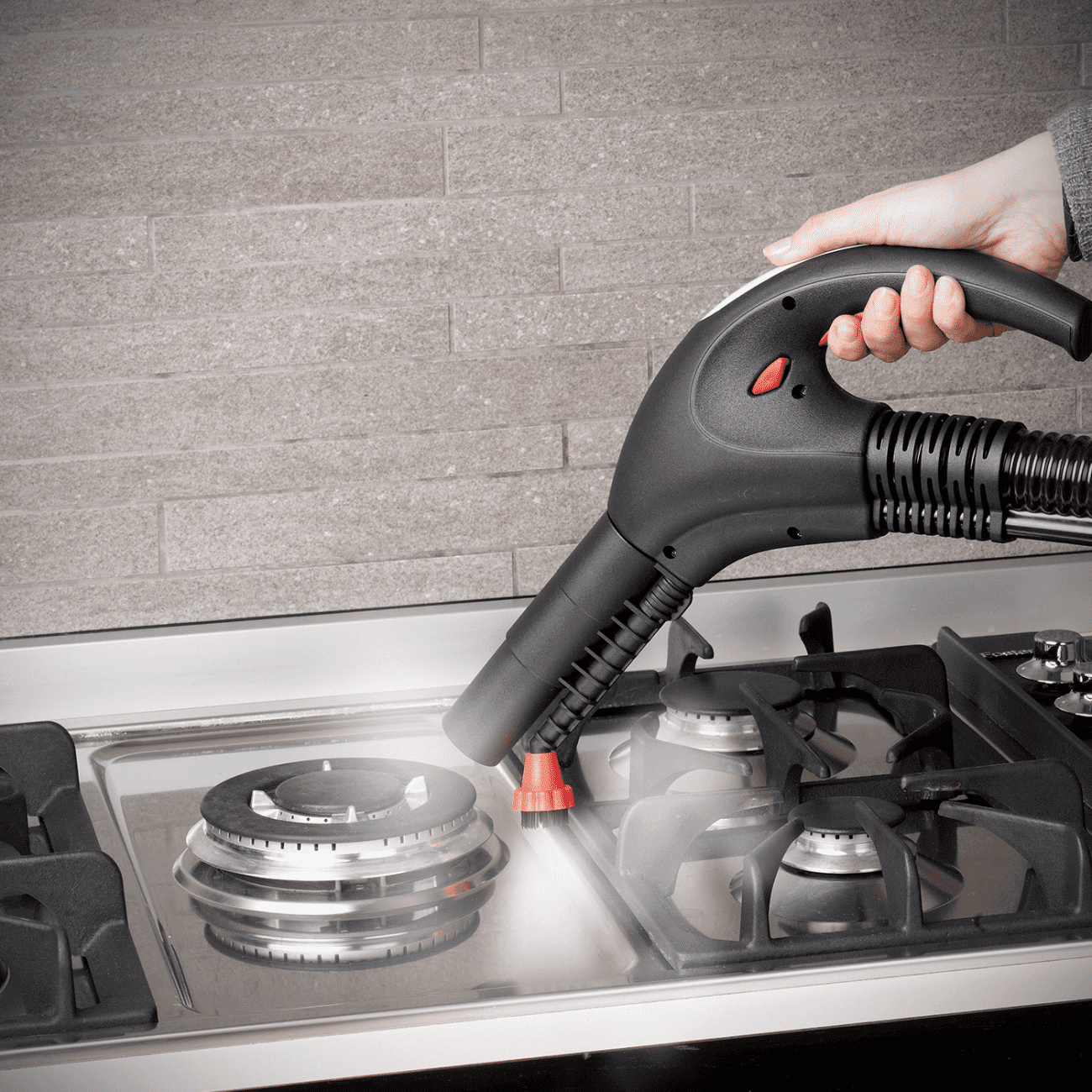 Koncentrator usmerja paro, ščetka pa omogoča dodatno mehansko moč pri odstranjevanju umazanije. Uporablja se lahko samo s paro ali v kombinaciji s sesanjem za učinkovito odstranjevanje raztopljene umazanije.